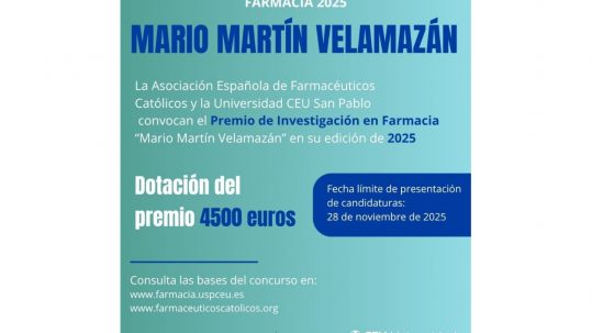 La Asociación Española de Farmacéuticos Católicos y la Universidad CEU San Pablo convocan el XVI PREMIO DE INVESTIGACIÓN...
