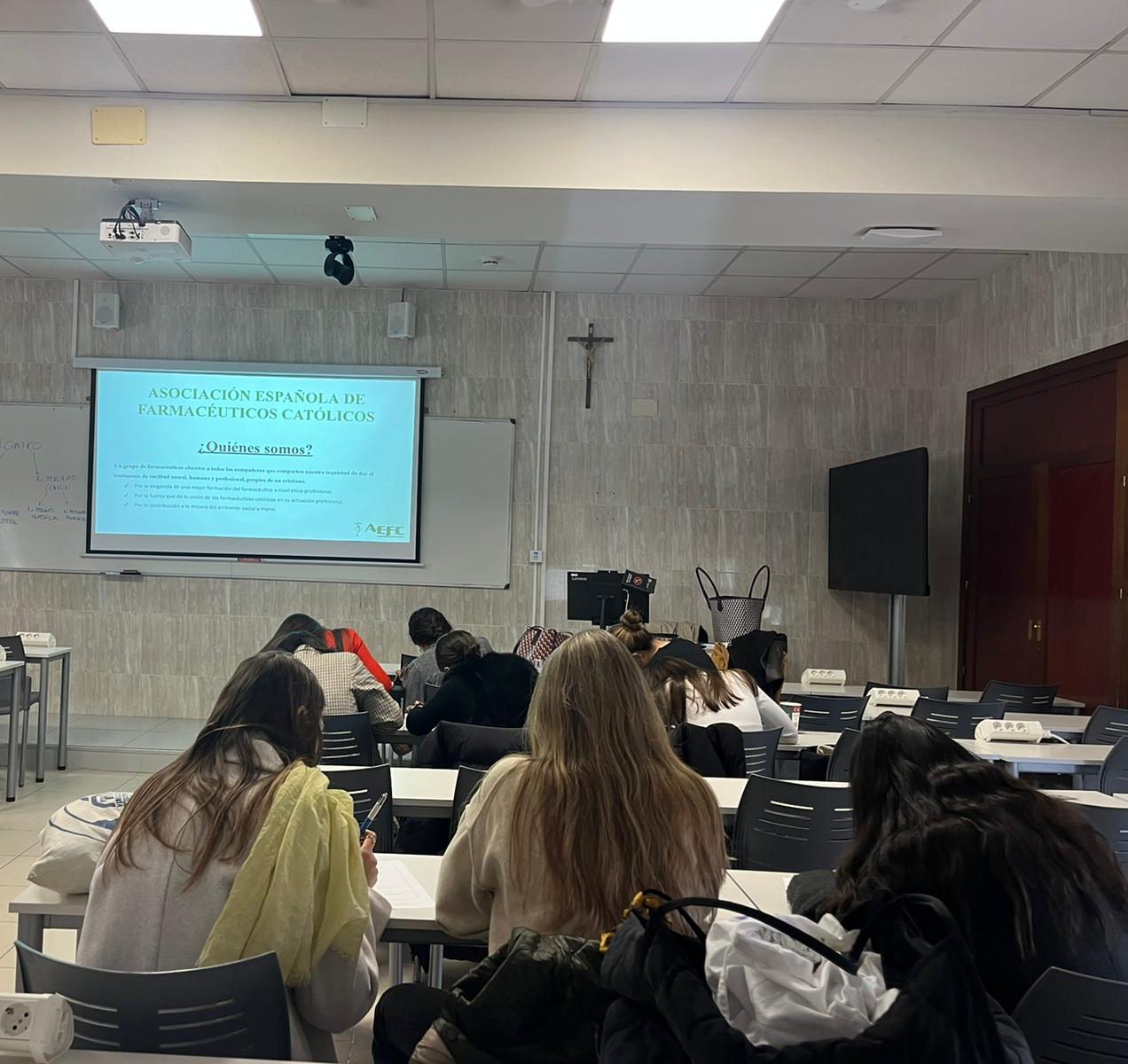 En el mes de febrero, la vicepresidenta María Davó realizó una presentación de la AEFC a alumnos de últimos cursos del Grado en Farmacia en la Universidad Francisco de Vitoria, iniciativa que tuvo una excelente acogida, despertando el interés de varios alumnos en conocer más de cerca la Asociación y valorar su futura incorporación como socios.